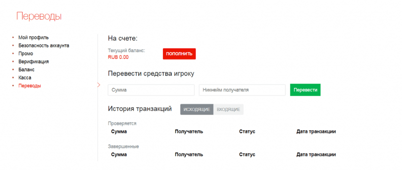 Переводить могут только верифицированные игроки и лишь реальные деньги.