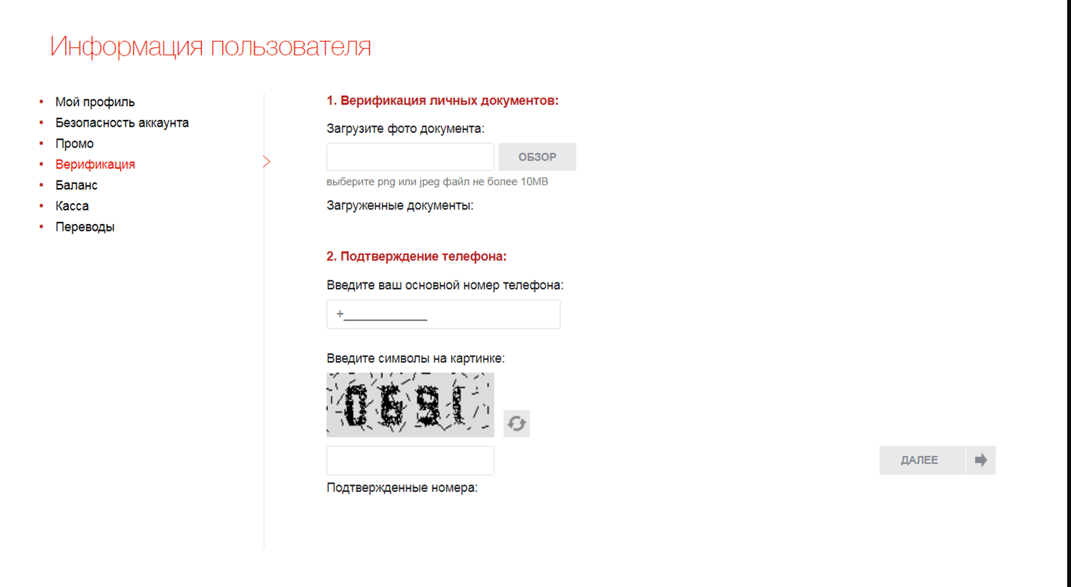 Относительно раздела «Верификация», то он является одним из ключевых, ведь это условие является обязательным. Дело в том, что только пользователи, которые прошли процедуру идентификацию личности имеют возможность обналичивать свои выигрыши. Если вы еще не прошли идентификацию учетной записи и платежного инструмента, то здесь можно отправить отсканированные или сфотографированные официальные документы (паспорт, водительское удостоверение или банковскую карточку) и следить за проверкой.