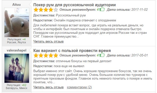 Хотя имеет место и третьи лица, которые публикуют «необходимые» отклики за деньги. Поэтому рядовым посетителям довольно проблематично отличить настоящие мнения от профинансированных. Оптимальный вариант – это настоящие рекомендации от знакомых, друзей, а также мнения от постоянных игроков на серьезных форумах, посвященных онлайн-покеру.
